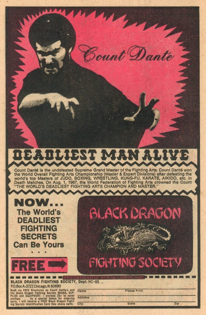 COMING SOON: In the 1960s and 70s, his scowl was unmistakable and his kung fu pose conveyed a menace that went beyond martial arts mastery. He called himself Count Dante and he claimed to be “The Deadliest Man Alive” in garish comic book ads and gruesome instructional manuals. While his name and title may have been more show biz than lineage, his drive to live up to his fearsome reputation left one man dead and a promising career in ruins.
