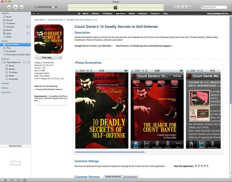 The new Count Dante iPhone app is available in the iTunes store: http://itunes.apple.com/us/app/count-dantes-10-deadly-secrets/id474466210?ls=1&mt=8 For .99 you get 10 self-defense lesson and a histor of Count Dante and his contribution to Mixed Martial Arts. Not bad for for less than a buck in the midst of a recession.